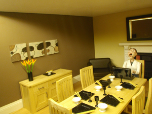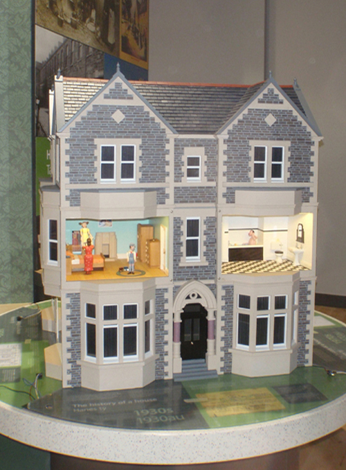 The house is a representation of a house on Cathedral Road Cardiff . it stands 1.2 m high and is 1 m square.